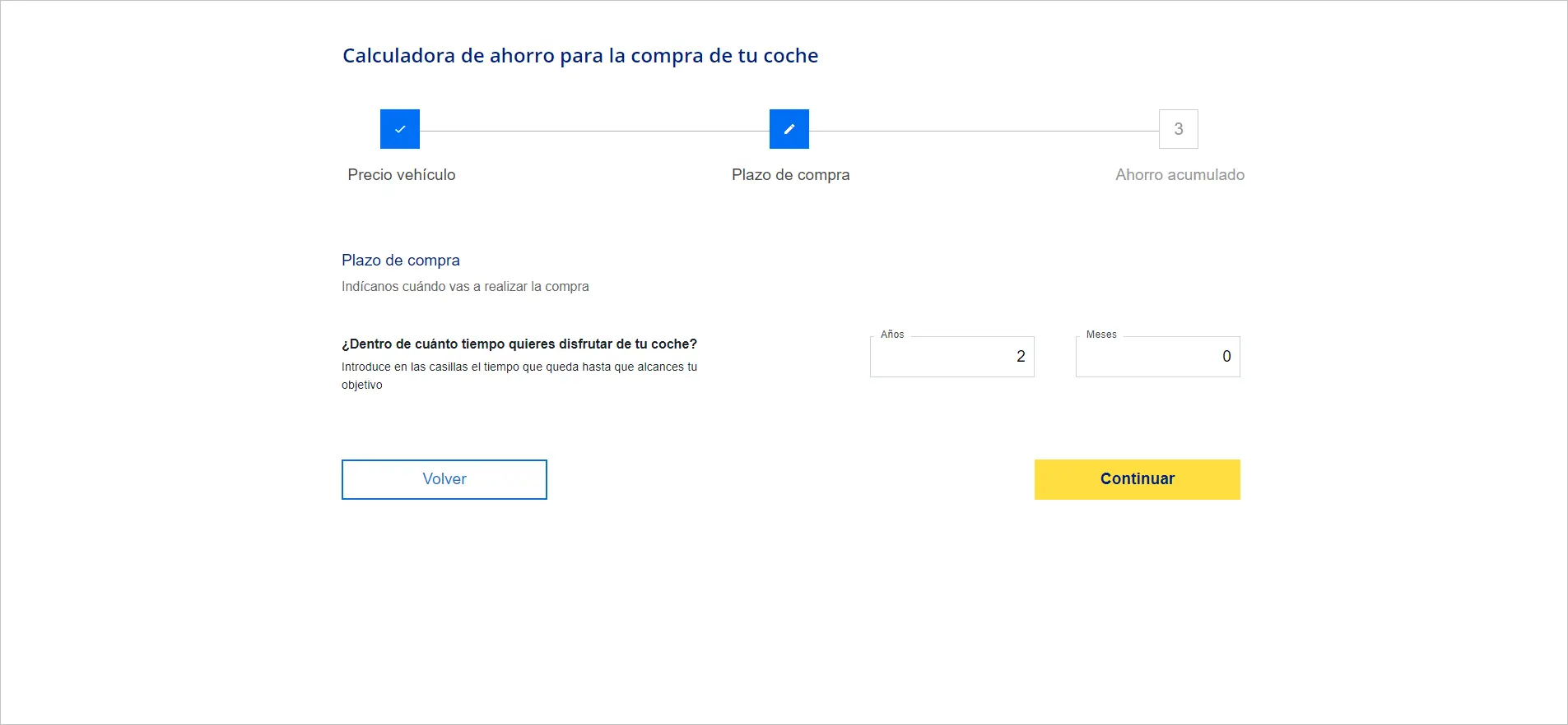 - ¿Dentro de cuánto tiempo quieres disfrutar de tu coche? Introduce en las casillas el tiempo (años / meses) que queda hasta que alcances tu objetivo.