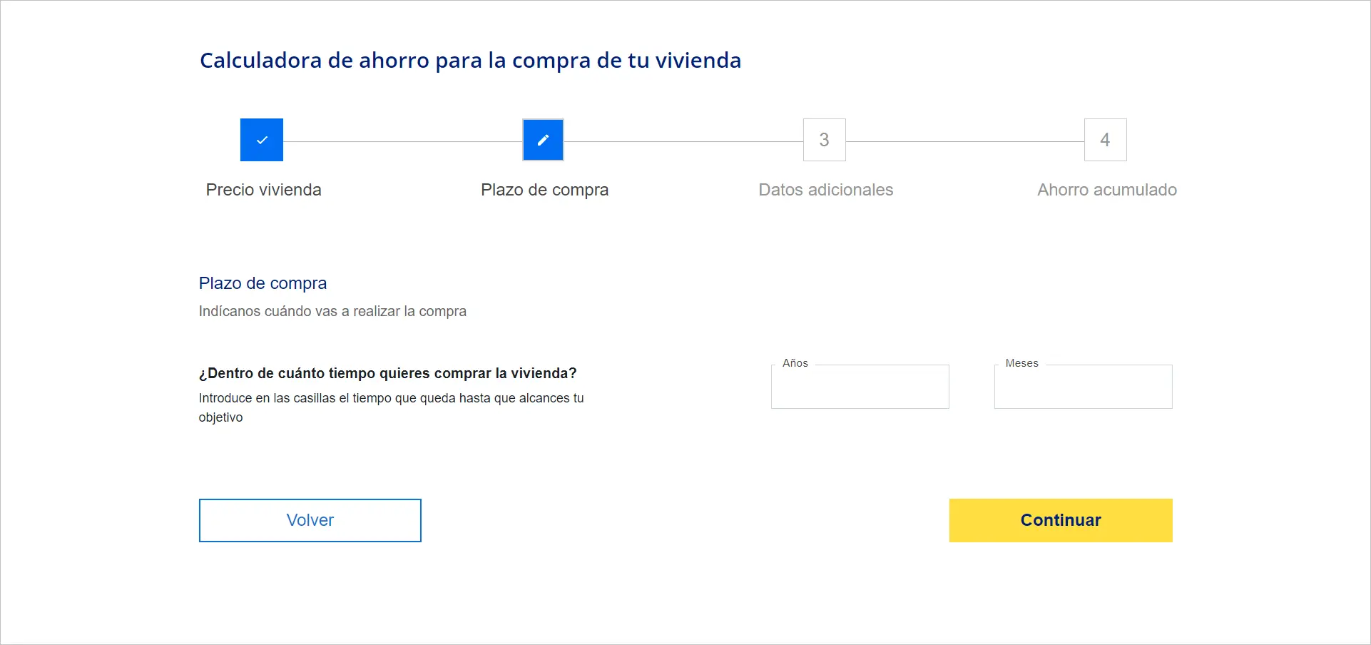 - ¿Dentro de cuánto tiempo quieres comprar la vivienda? Introduce en las casillas el tiempo (años / meses) que queda hasta que alcances tu objetivo.