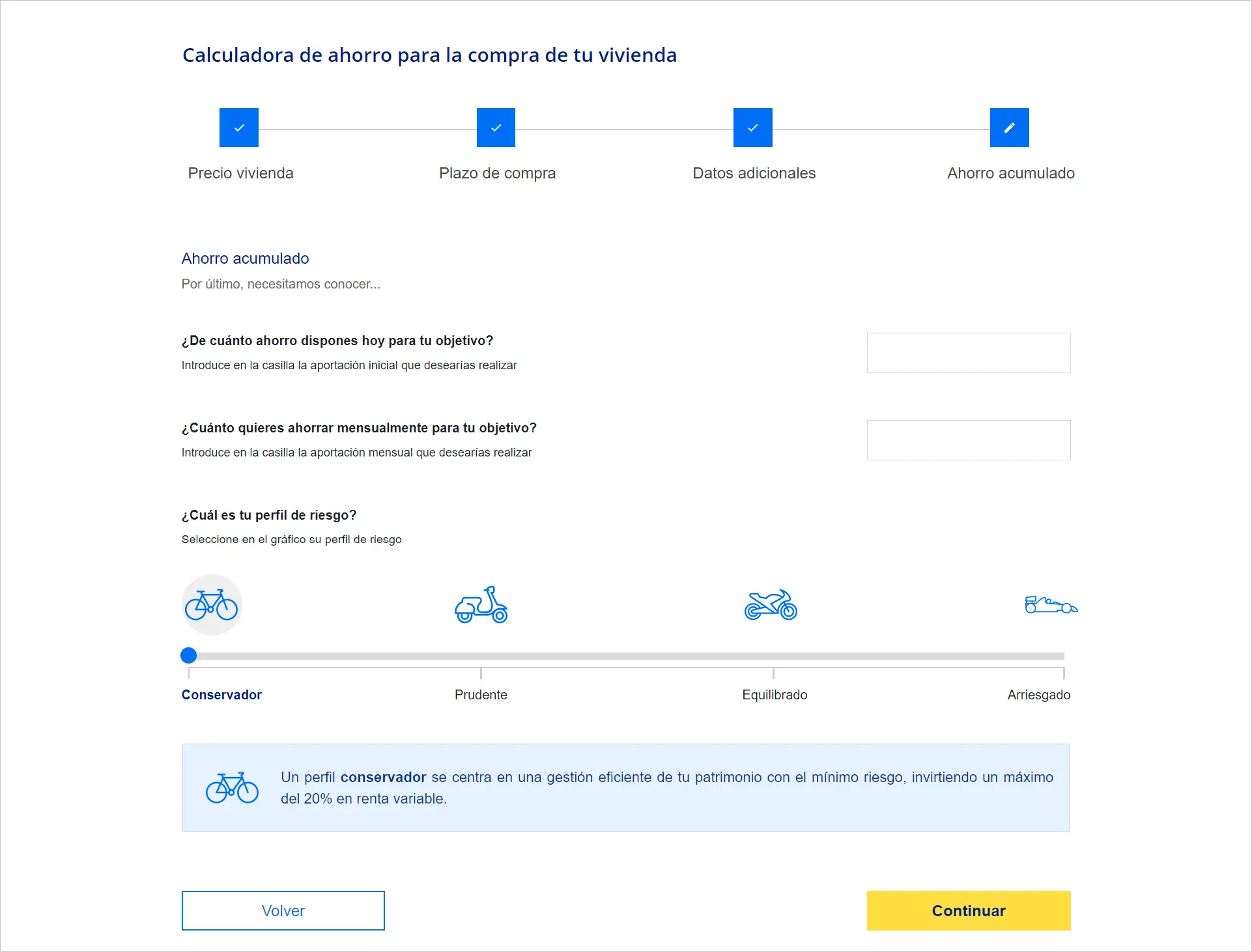 Por último, tendrás que introducir datos sobre tu ahorro acumulado y tu perfil de riesgo**.