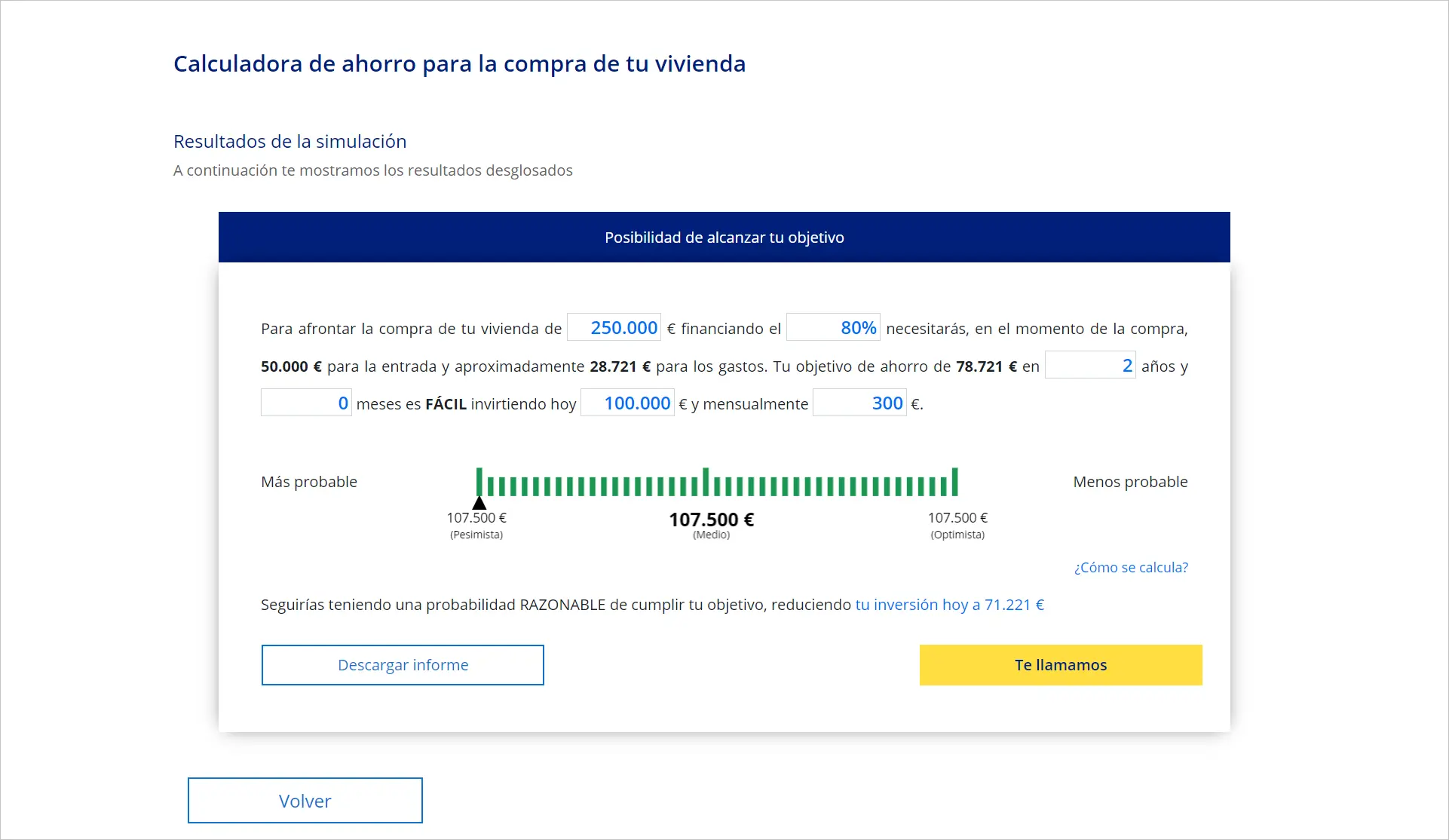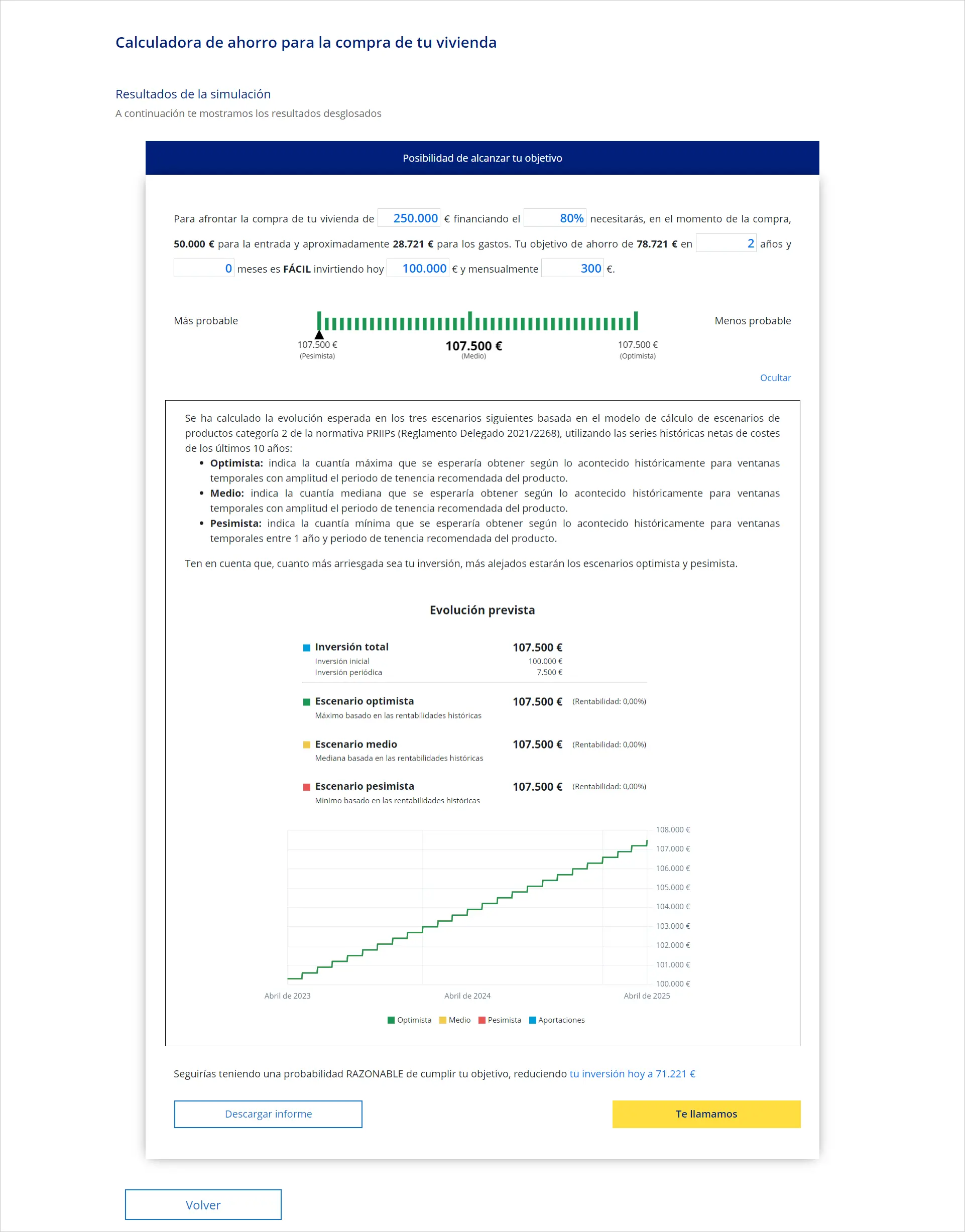 Una vez hayas cumplimentado todas las fases del proceso, te mostraremos los resultados de la simulación, con un completo desglose de la información.