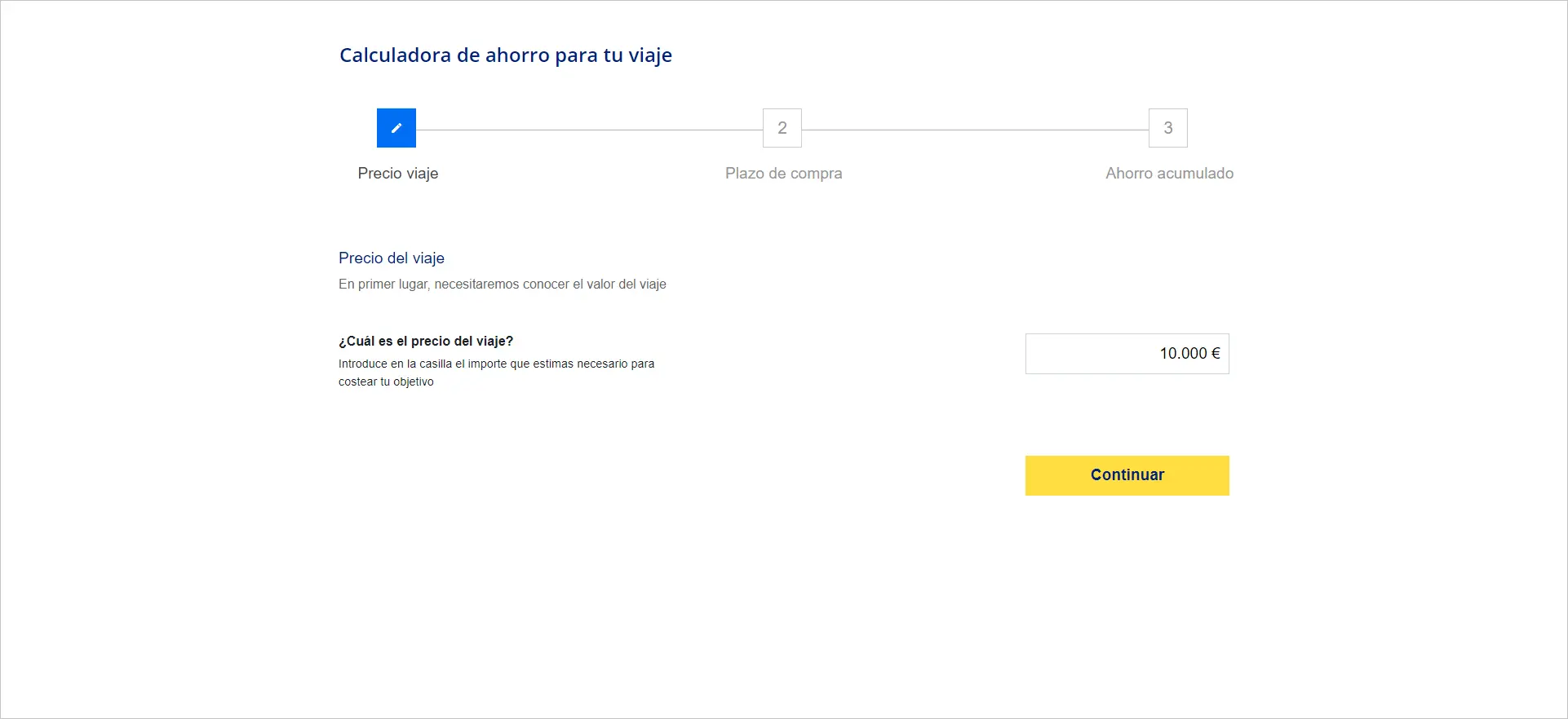 Para comenzar con la estimación de tu plan de ahorro, necesitamos conocer el precio del viaje que deseas realizar.
