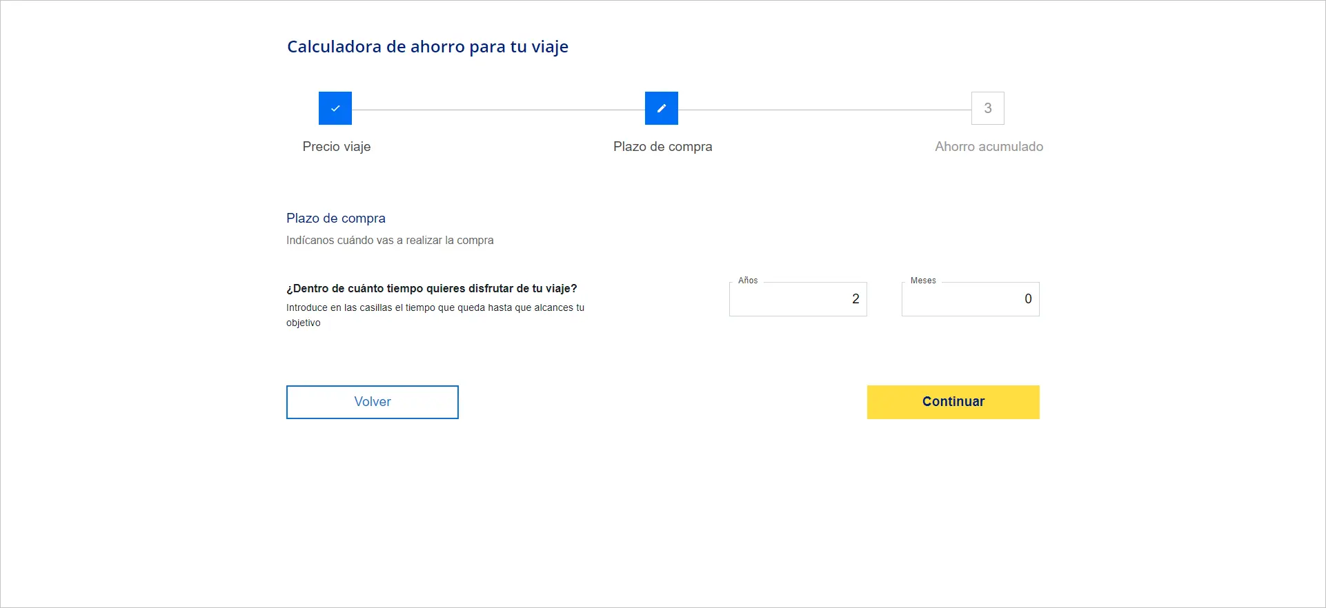 - ¿Dentro de cuánto tiempo quieres disfrutar de tu viaje? Introduce en la casilla el tiempo (años y meses) que queda hasta que alcances tu objetivo.