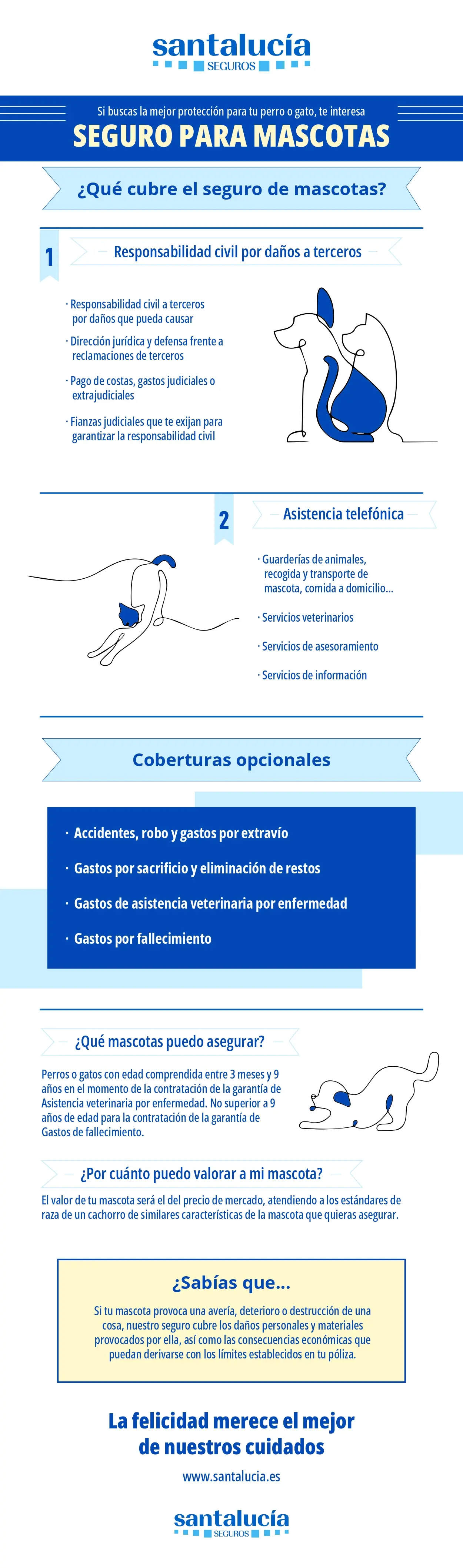 En Santalucía contamos con un seguro de mascotas que incorpora una amplia gama de garantías. Porque cuidar de nuestros animales de compañía es lo primero.